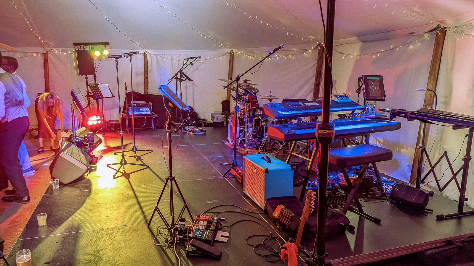 The stage itself was 6m x 4m, which is ideal for our 6-piece setup. That matters more than people sometimes realise. It gave the band and guests room to perform comfortably, helped sightlines for guests, and made the whole show feel bigger and more polished.